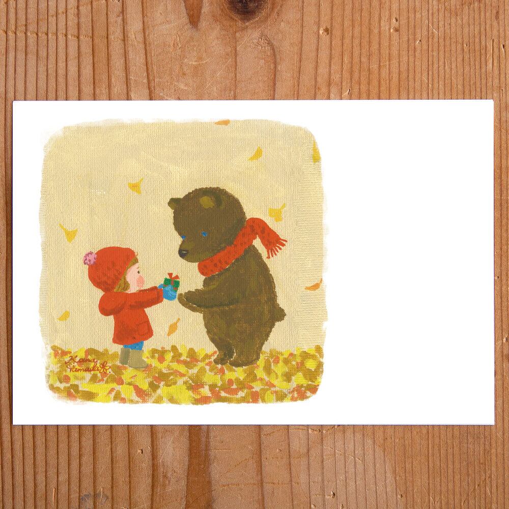 落ち葉が降る森のお友達に、何をあげてるのかな・・・?