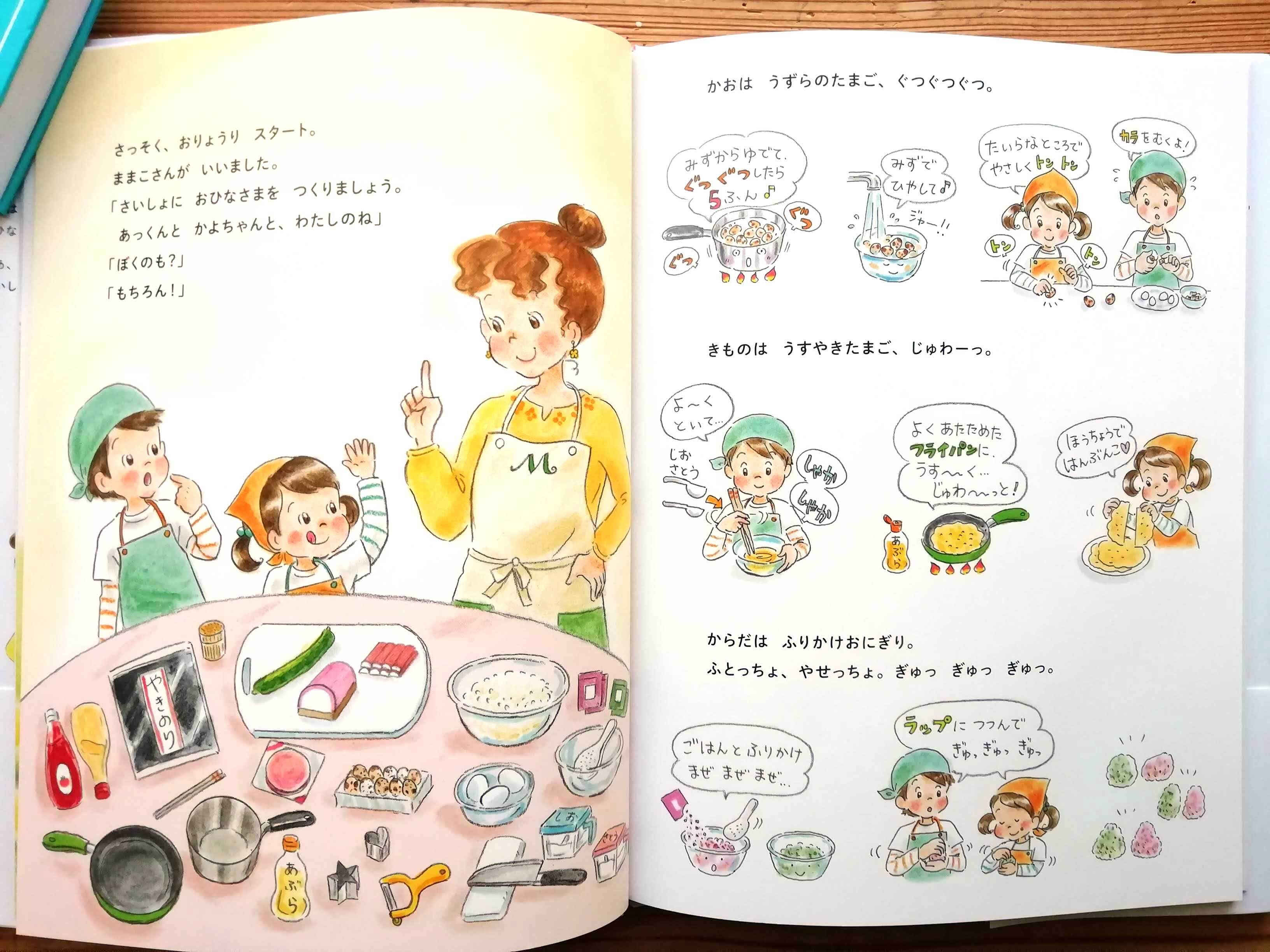 全メニューが、イラストで詳しく楽しく解説されていますので、小さなお子様も、絵本を読みながら親御さんと一緒にお料理するところがイメージ出来ます。